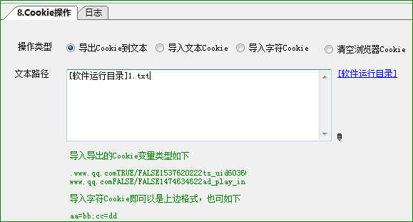 注意:文本中的cookie必须是火车浏览器导出的cookie格式。因为该“cookie操作”步骤,只能导入火车浏览器中的cookie格式,如下图