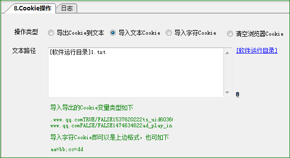 3.导入字符cookie,导入火车浏览器中接收的cookie格式。 4.清除cookie:清除浏览器中的cookie。